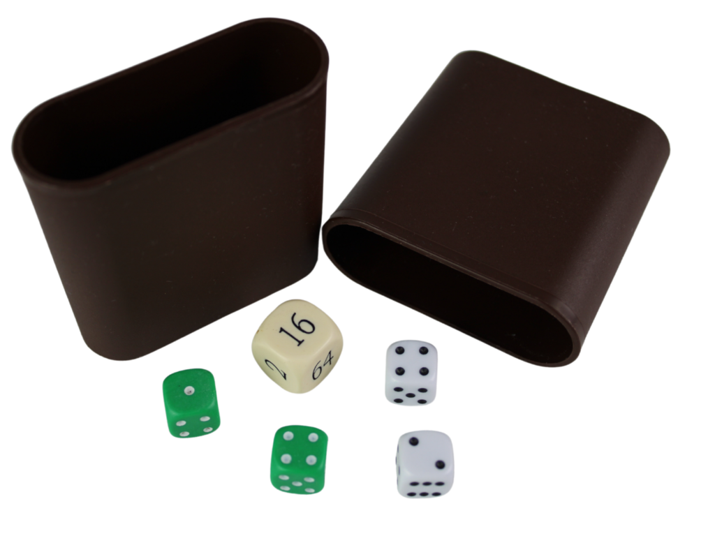 Mejora tu experiencia de backgammon con este conjunto de dados de repuesto. Incluye dos vasos de dados marrones para lanzamientos silenciosos y controlados, y un elegante cubo de doblaje negro (2-64). Viene con cuatro dados de precisión en blanco y verde. Perfecto para reemplazar piezas desgastadas o mejorar tu juego. Duradero, elegante e ideal para jugadores de todos los niveles.