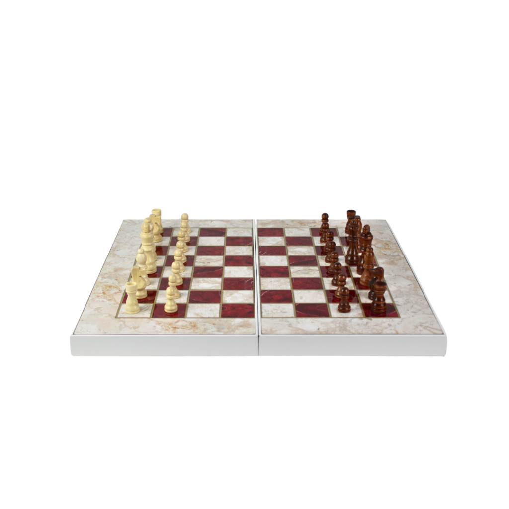- Tablero de ajedrez y backgammon con diseño de mármol rojo