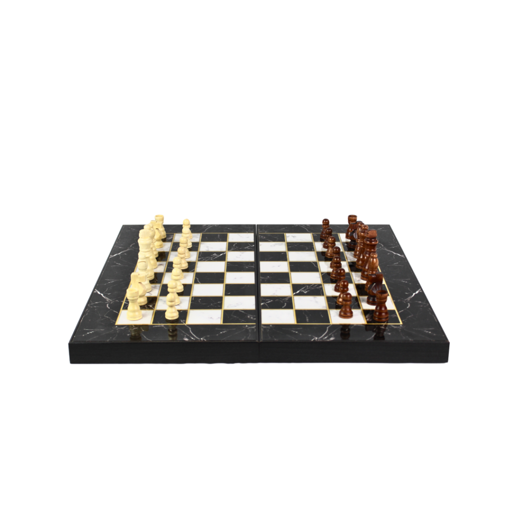 Juego de Ajedrez y Backgammon de Diseño de Mármol Negro de 19 Pulgadas