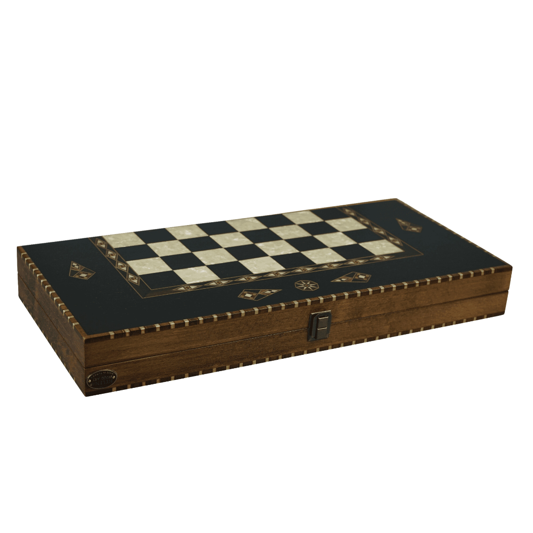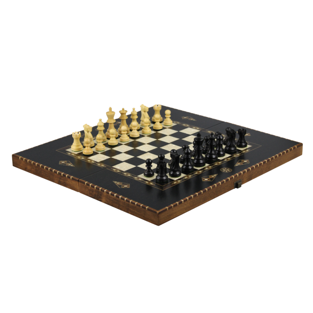 El juego de ajedrez y backgammon de ébano incluye: