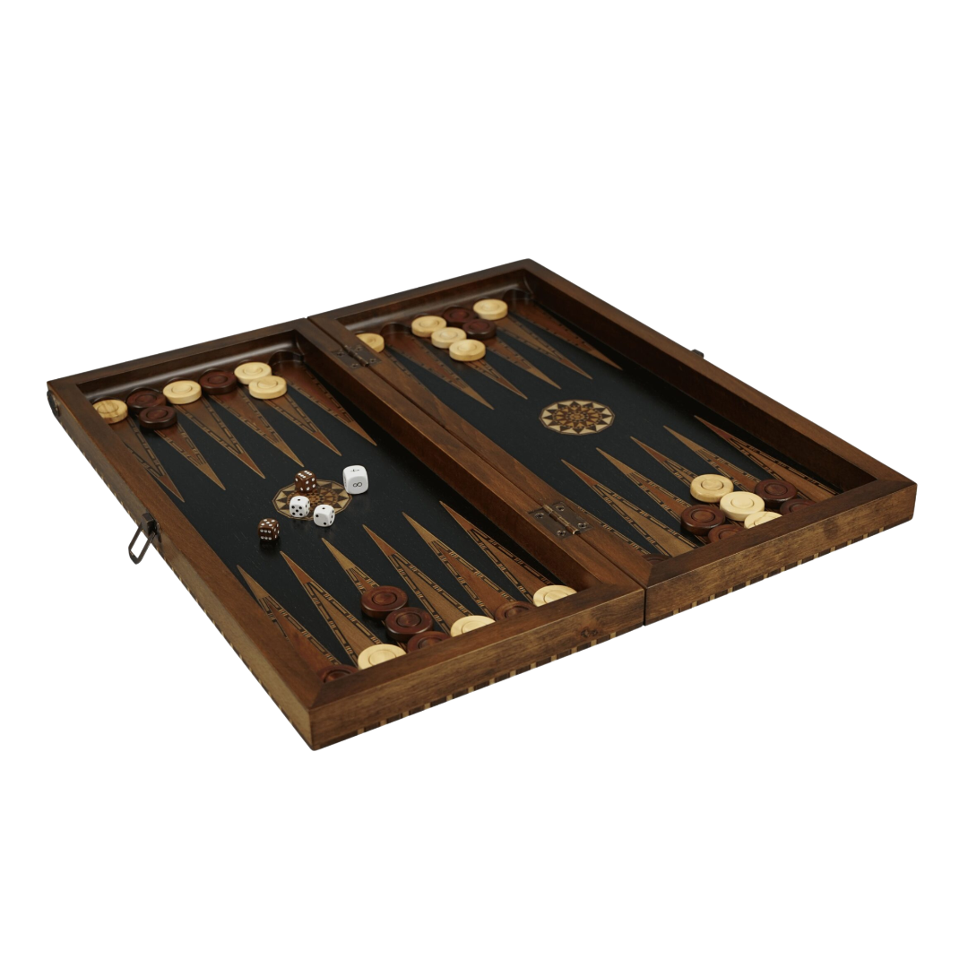 Juego de Ajedrez y Backgammon Rural de Ébano Helena con Piezas de Ajedrez Ebonizadas Clásicas Staunton de 20 Pulgadas
