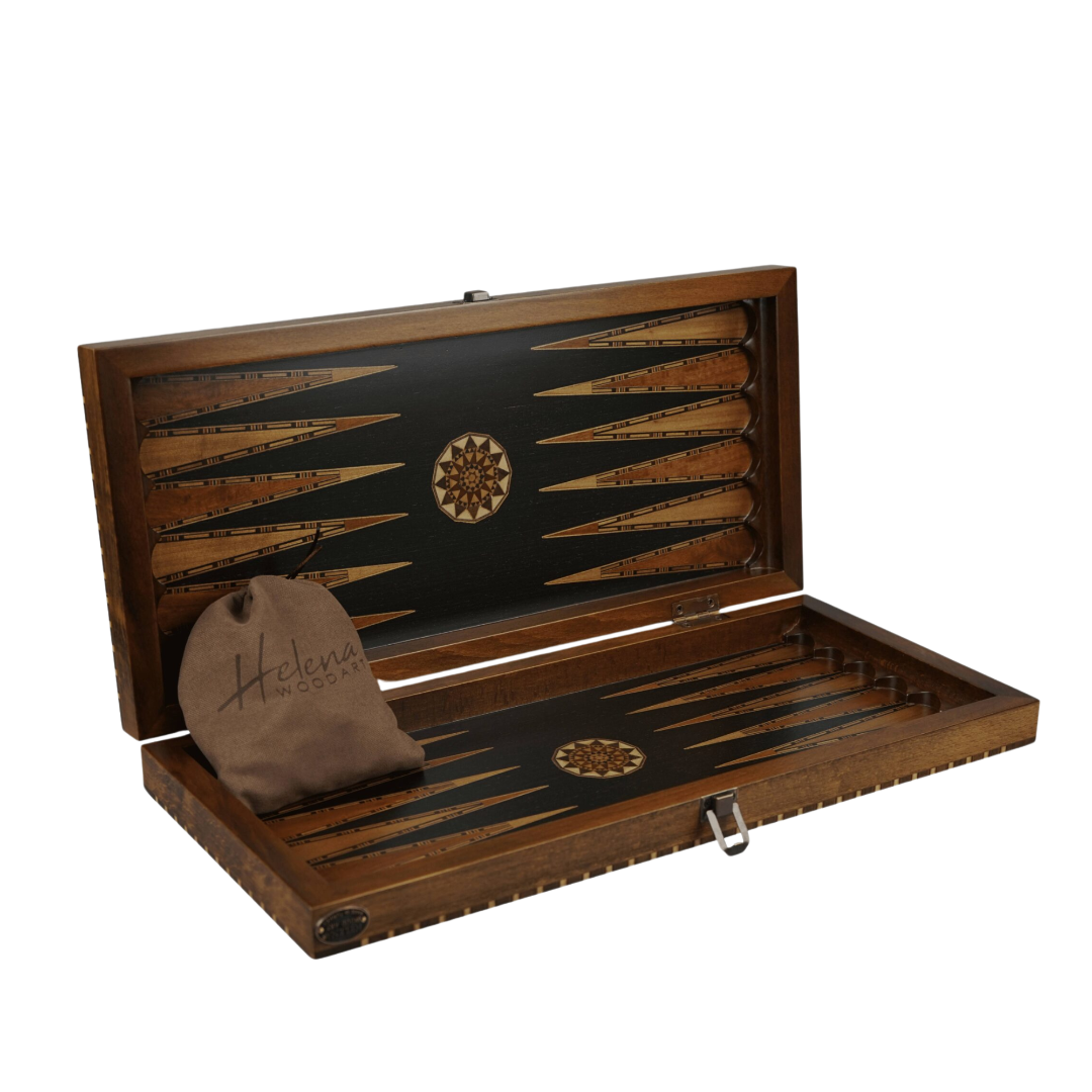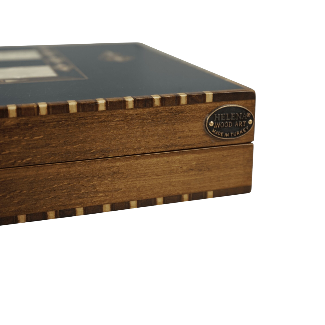 Diseño rural en madera de ébano, este es un juego/tablero de backgammon turco con incrustaciones de nácar de artistas turcos. Hay muchos pequeños cortes, marcas y formas de trabajo en madera que están hechos a mano. Diferentes maderas incrustadas, utilizando la mejor madera de ébano y olivo natural puro para añadir un toque de naturalidad y singularidad a tu hogar. Un souvenir perfecto, un regalo para un ser querido o una hermosa adición a una colección de tableros. Un conjunto con colores vibrantes y atractivos junto con cada pieza perfectamente y meticulosamente ajustada con precisión por los artesanos más hábiles y experimentados. Cada pieza toma un número considerable de semanas para prepararse y construirse completamente a mano. Hecho por una marca increíblemente reputada en Helena Wood Arts.