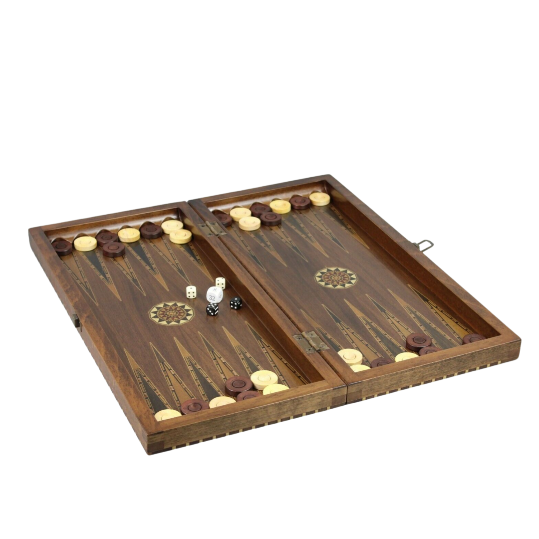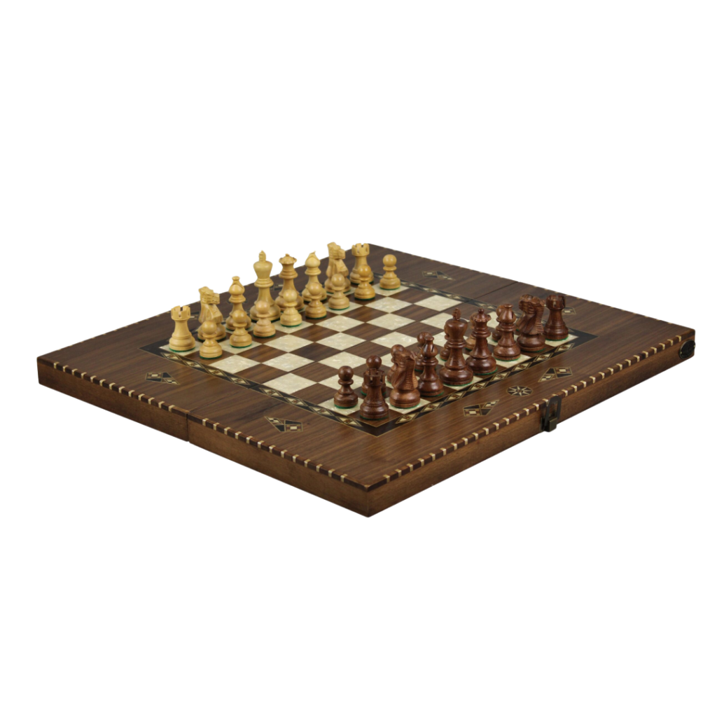Juego de Ajedrez y Backgammon Rural de Nogal Helena con Piezas de Ajedrez Clásicas Staunton de Sheesham de 20 Pulgadas