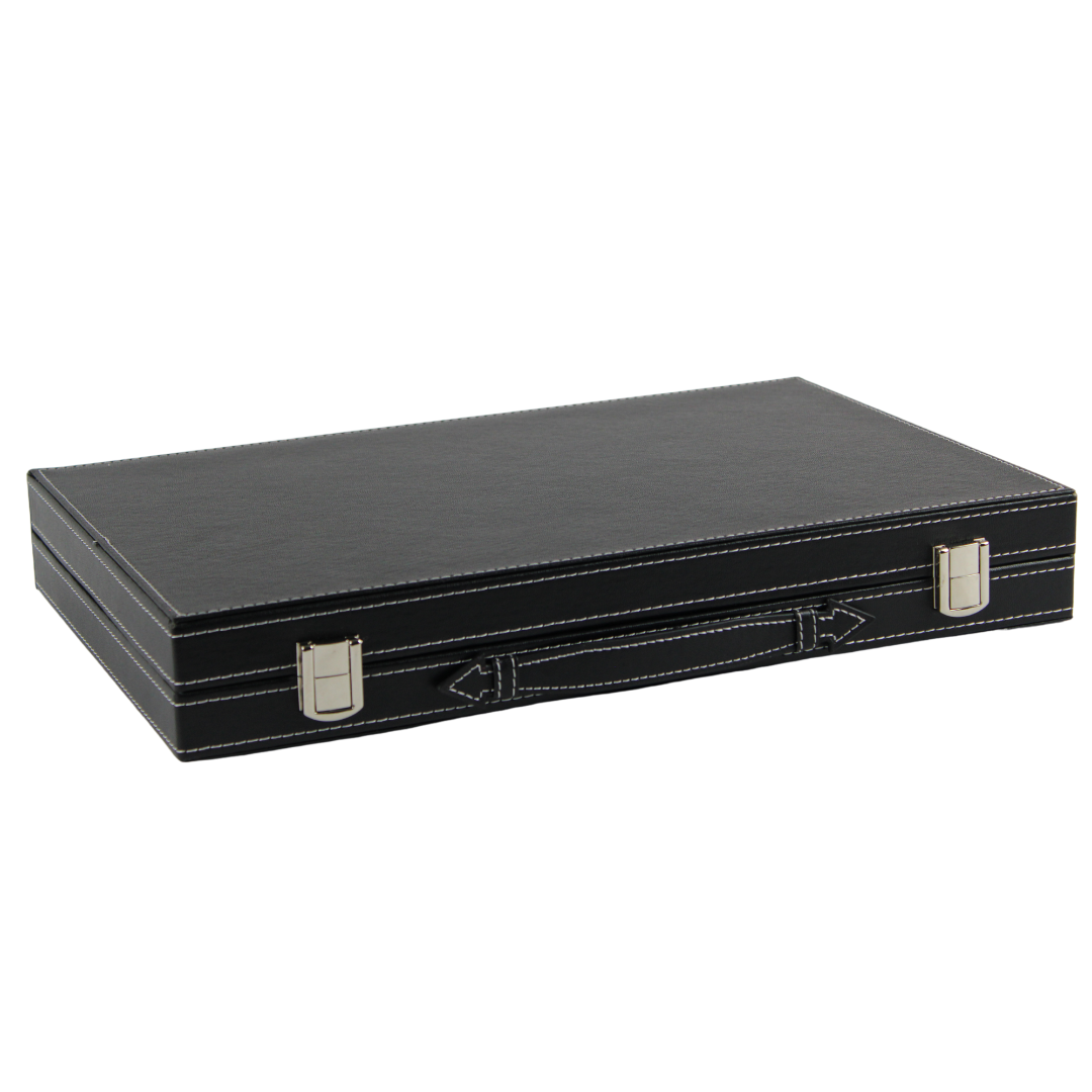Presentamos el opulento Set de Backgammon Verde Malaquita, una majestuosa obra maestra de 21 pulgadas que irradia sofisticación y encanto. Originalmente en cuero negro, este set presume un lujoso exterior de cuero sintético noir negro meticulosamente cosido con detalles blancos blancos impecables, culminando en un diseño refinado y elegante. Complementado por dos clips de metal latón plateado que garantizan un cierre seguro, este set emana una mezcla de elegancia y practicidad. Su interior presenta un lujoso forro de fieltro verde adornado intrincadamente con llamativos triángulos rojos y blancos, mejorando el atractivo visual y proporcionando una superficie premium para el juego. Junto con dos copas de backgammon y un juego completo de dados y piezas de backgammon de resina, este set se erige como un testimonio tanto de lujo como de funcionalidad, ofreciendo una experiencia de juego exquisita para entusiastas y conocedores por igual.