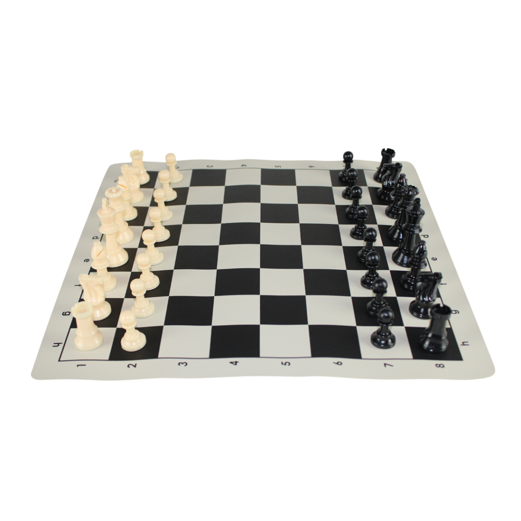 completo con piezas de ajedrez Staunton con base de fieltro, diseñado para elevar tu experiencia de juego. Este set combina estilo, conveniencia y una excepcional artesanía para jugadores tanto casuales como serios.El tablero de ajedrez presenta una cautivadora superficie de vinilo mate, adornada con cuadros alternos en blanco y negro, proporcionando un excelente contraste para una fácil visibilidad de las piezas. Midiendo 20 pulgadas, el amplio área de juego ofrece espacio suficiente para movimientos estratégicos y un juego reflexivo.Incluido en el set, encontrarás un juego completo de piezas de ajedrez Staunton, cuidadosamente elaboradas con plástico de alta calidad. Cada pieza está meticulosamente diseñada con detalles intrincados y proporciones precisas, reflejando el diseño clásico Staunton que ha sido el estándar de oro en ajedrez durante generaciones. Además, las piezas tienen una base de fieltro suave para proteger el tablero y minimizar el ruido durante el juego.Para asegurar la máxima conveniencia, el Set de Ajedrez Enrollable Black Club viene con una caja de embalaje marrón. Esta caja está específicamente diseñada para almacenar y proteger el tablero de ajedrez enrollado y todas las piezas, manteniéndolas seguras y organizadas cuando no están en uso.Ya sea que seas un entusiasta del ajedrez afinando tus habilidades o un jugador casual buscando partidas relajadas, este Set de Ajedrez Enrollable Black Club proporciona la combinación perfecta de elegancia y funcionalidad. Experimenta la alegría de jugar ajedrez con este set bellamente elaborado que combina un tablero de vinilo mate de 20 pulgadas, piezas de ajedrez Staunton con base de fieltro y una práctica caja de embalaje marrón para un fácil almacenamiento y transporte.