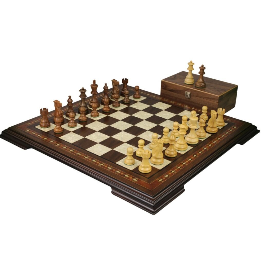 Juego de Ajedrez de Nogal de 17 Pulgadas con Tablero Helena y Piezas de Ajedrez Staunton Clásicas Atlantic Ponderadas de Sheesham de 3 Pulgadas