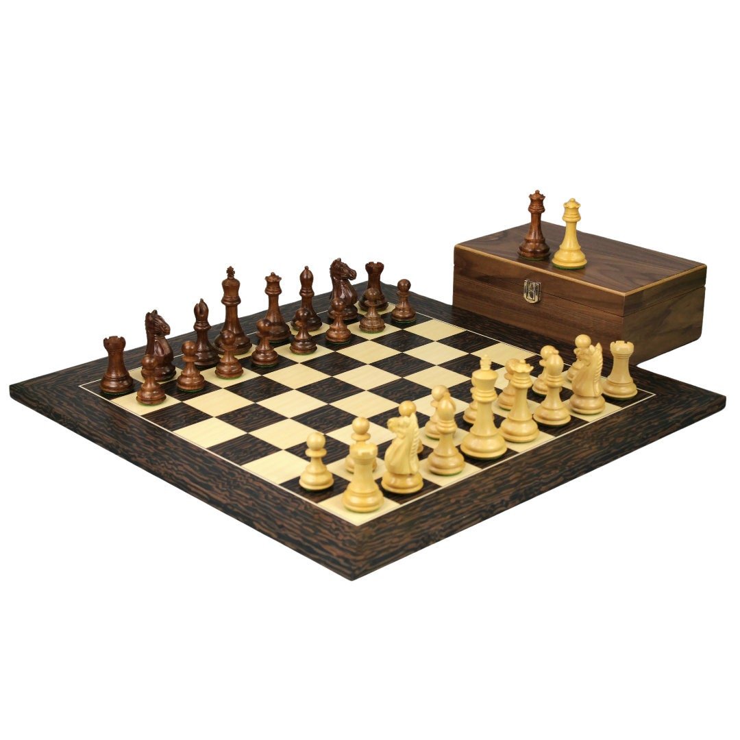 Juego de Ajedrez Tiger Ebony de 20 Pulgadas con Piezas Staunton Fierce Knight (Gambito de Reina) de Sheesham y Pesadas de 3.75 Pulgadas