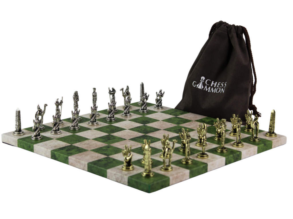 Juego de Ajedrez Personalizado de Metal con Tablero de Cuero Sintético Verde y Bolsa de Cordón de 14 Pulgadas