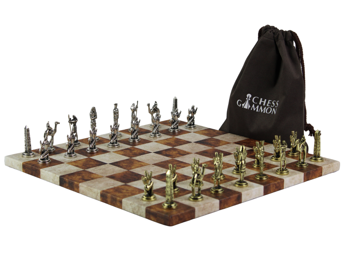 Juego de Ajedrez de Metal Personalizado con Tablero de Cuero Sintético Marrón y Bolsa con Cordón de 14 Pulgadas