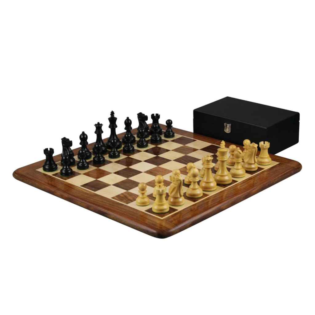 Conjunto de Ajedrez de Sheesham con Tablero Plano de Sheesham de 20 Pulgadas y Piezas de Ajedrez Ebonised Reykjavik de 3.75 Pulgadas
