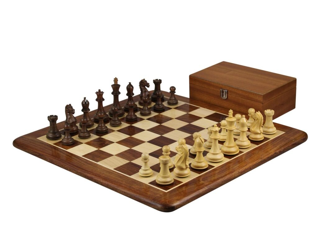 Conjunto de Ajedrez de Sheesham con Tablero Plano de Sheesham de 20 Pulgadas y Piezas de Ajedrez Fierce Knight Staunton de Sheesham de 3.75 Pulgadas