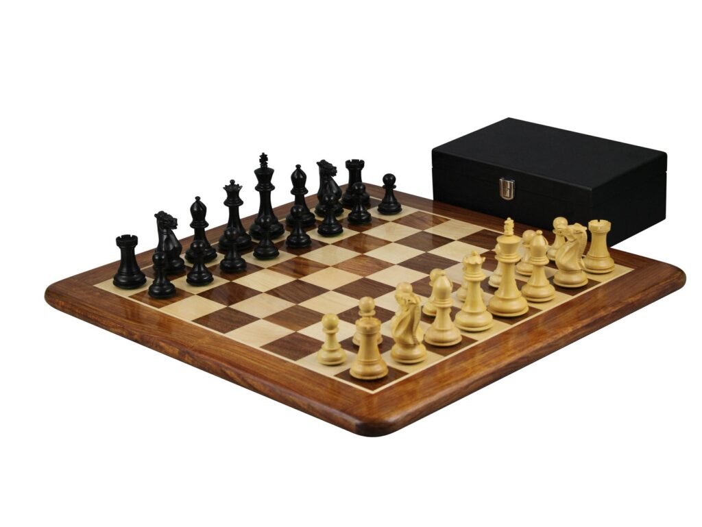 Conjunto de Ajedrez de Sheesham con Tablero Plano de Sheesham de 20 Pulgadas y Piezas de Ajedrez Morphy Profesional Staunton Ebonizadas de 3.75 Pulgadas