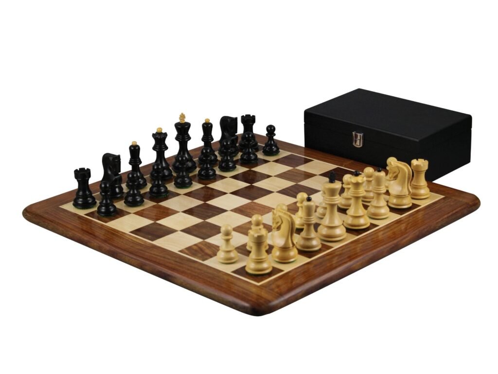 Conjunto de Ajedrez de Sheesham con Tablero Plano de Sheesham de 20 Pulgadas y Piezas de Ajedrez Zagreb Ebonizadas de 3.75 Pulgadas