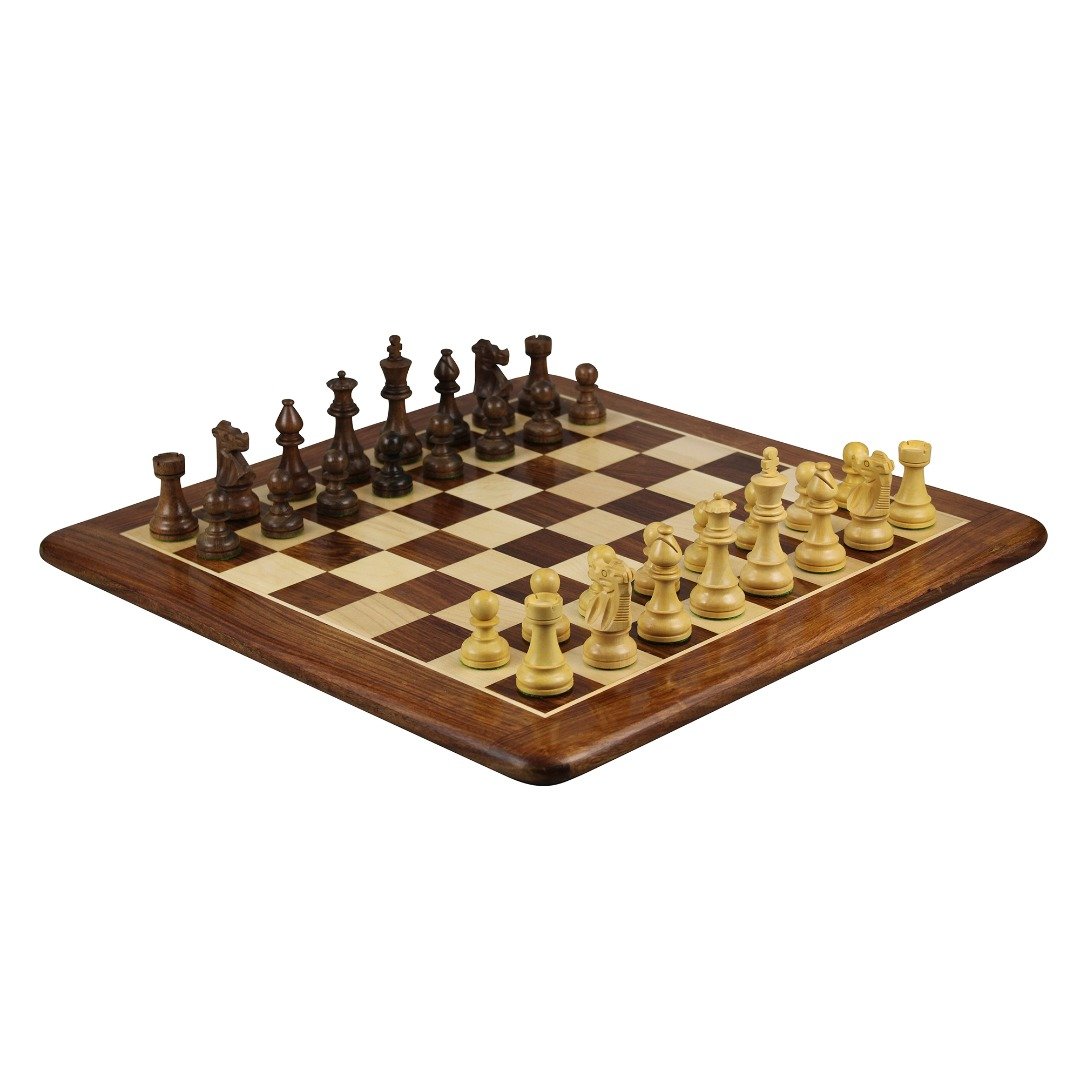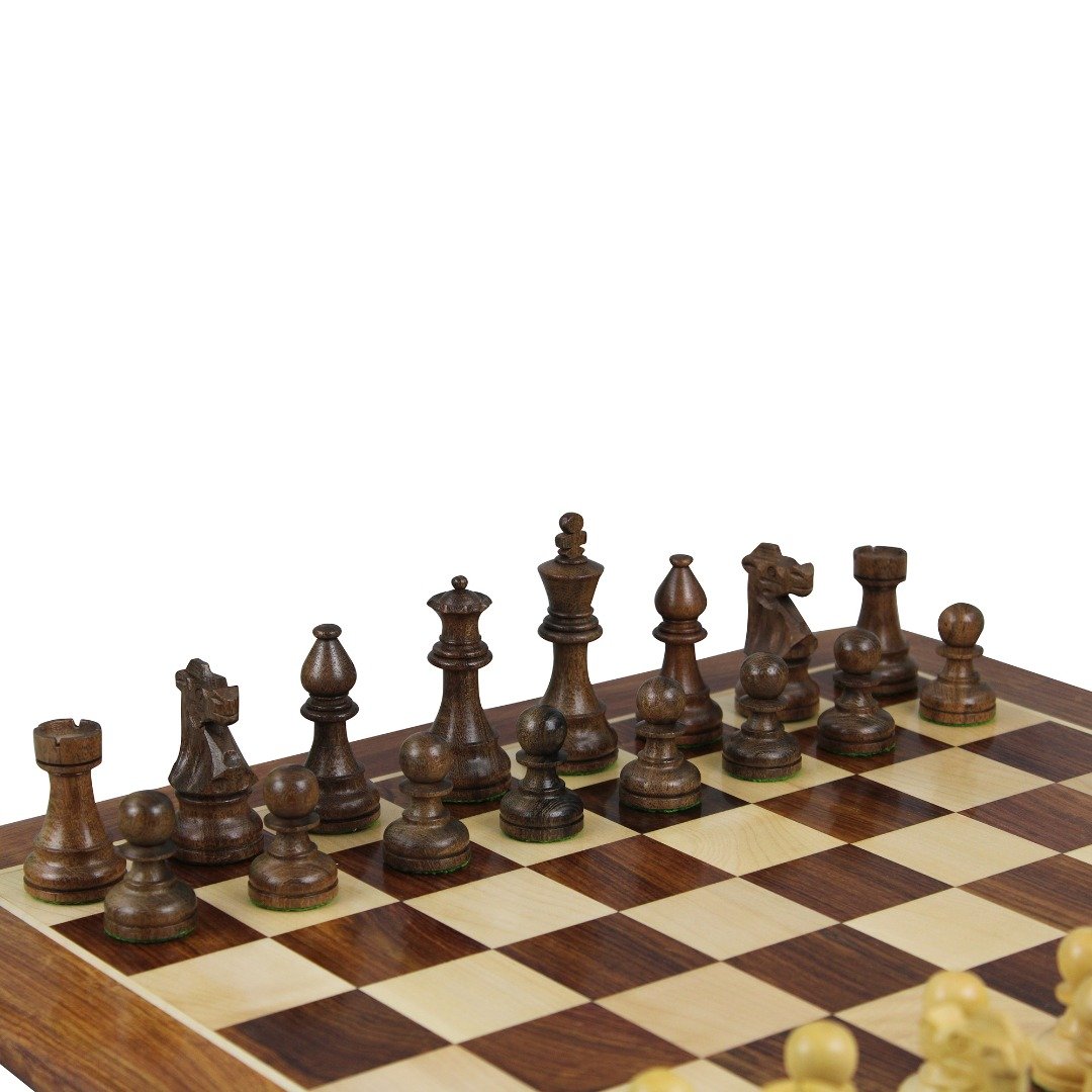 Juego de Ajedrez de Sheesham con Tablero de Ajedrez de Sheesham de 16 Pulgadas y Piezas de Ajedrez Staunton French Lardy de 3 Pulgadas
