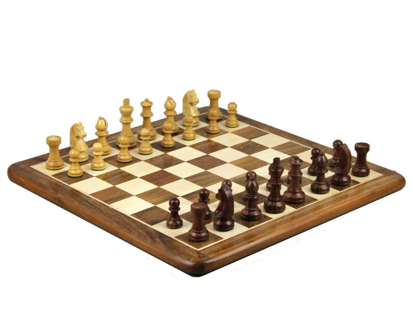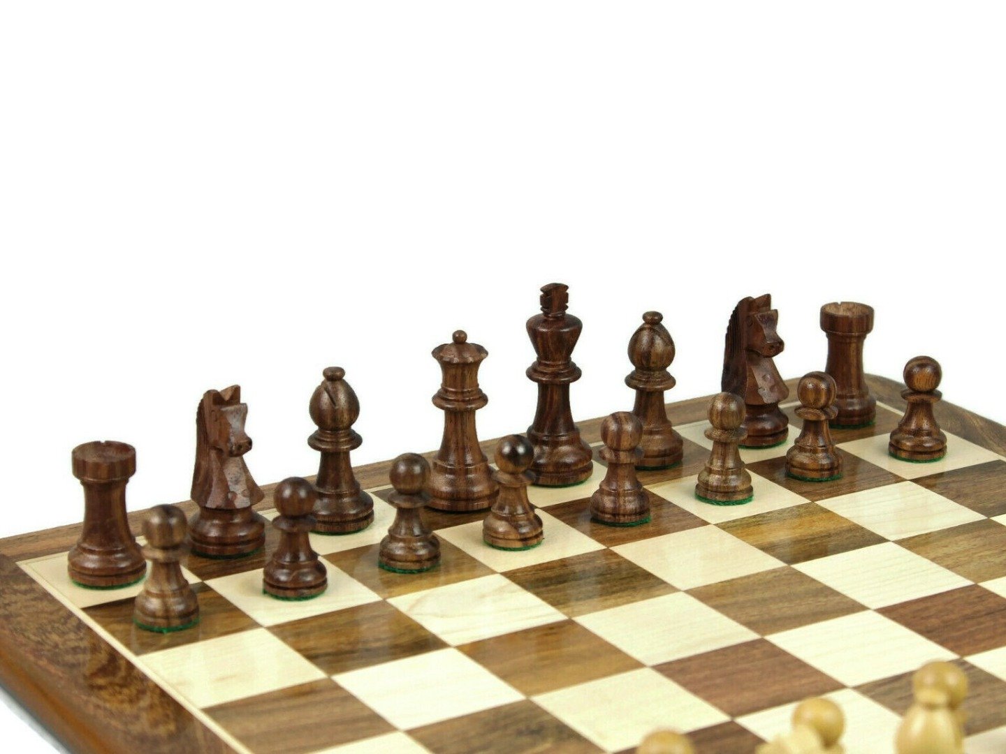 Juego de Ajedrez de Sheesham con Tablero Plano de Sheesham de 16 Pulgadas y Piezas de Ajedrez Staunton Alemanas de 3 Pulgadas