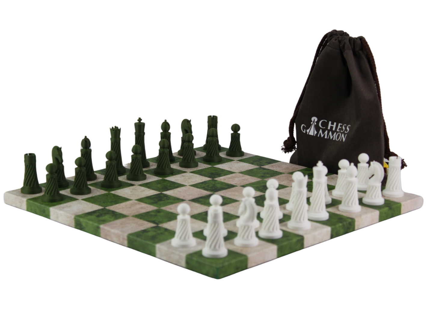 Las piezas descansan sobre un sofisticado tablero de cuero sintético verde que irradia elegancia y durabilidad, lo que convierte a este conjunto en un regalo excepcional para los entusiastas del ajedrez o una distinguida adición a tu propia colección. La bolsa de cierre incluida garantiza un fácil almacenamiento y portabilidad, para que puedas llevar tu juego dondequiera que vayas. Ya sea para exhibición o para jugar, este conjunto de ajedrez aporta lujo, funcionalidad y conciencia ecológica en cada movimiento.