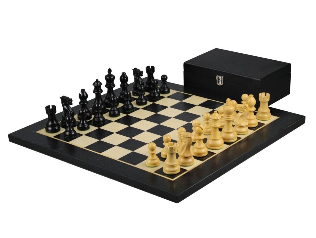 Juego de Ajedrez de Ébano de 20 Pulgadas con Tablero de Ajedrez Plano Helena y Piezas de Ajedrez Ejecutivas Staunton Ebonizadas y Pesadas de 3.75 Pulgadas