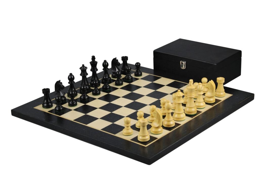 Juego de Ajedrez de Ebano de 20 Pulgadas con Tablero Plano Helena y Piezas Alemanas Staunton Ebonizadas y Pesadas de 3.75 Pulgadas