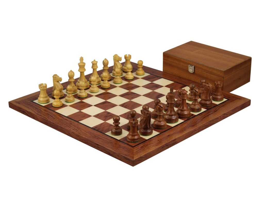 Juego de Ajedrez de Palisandro de 20 Pulgadas con Tablero Plano Helena y Piezas de Ajedrez Staunton Reykjavik de Sheesham Ponderadas de 3.75 Pulgadas