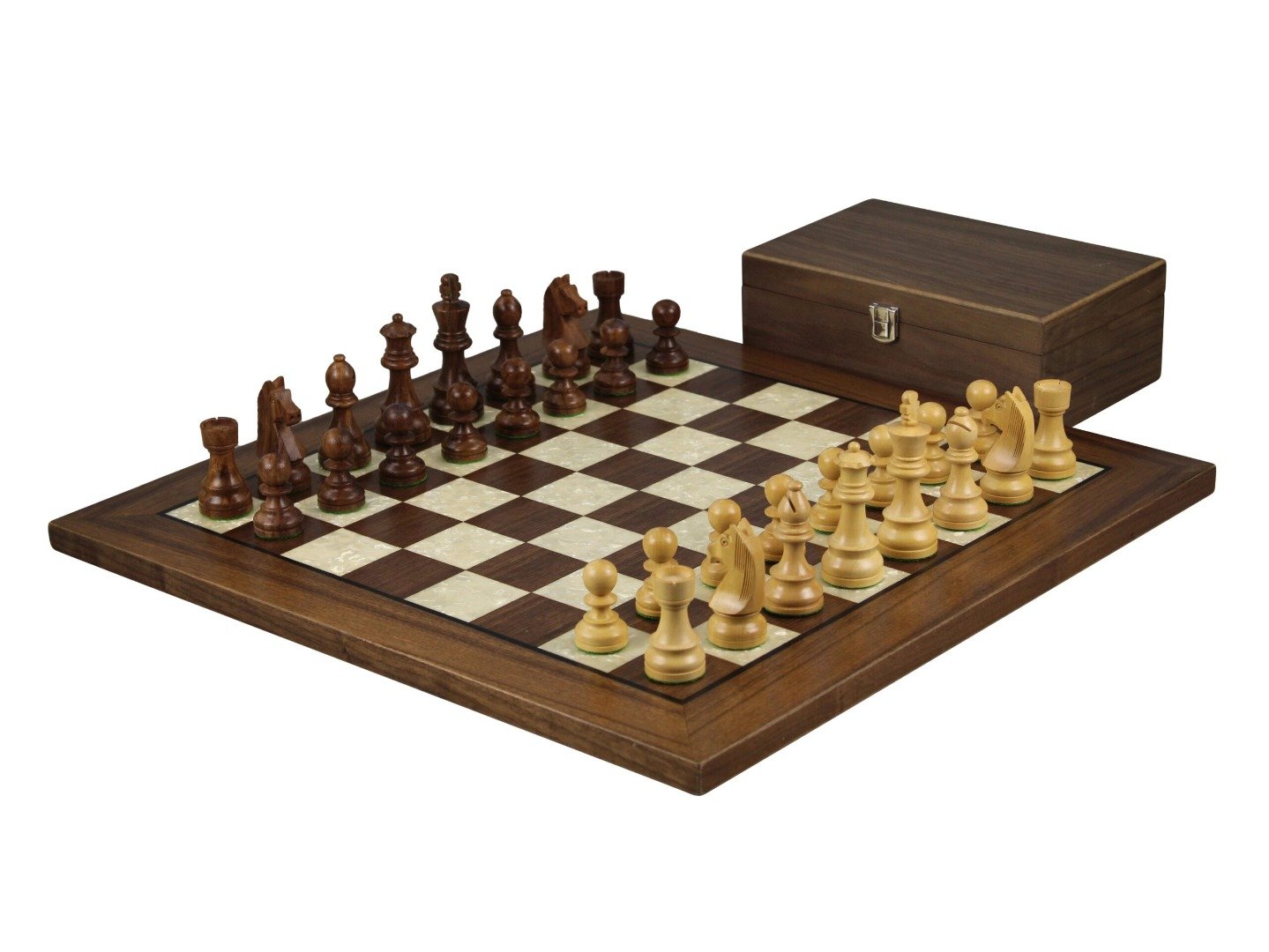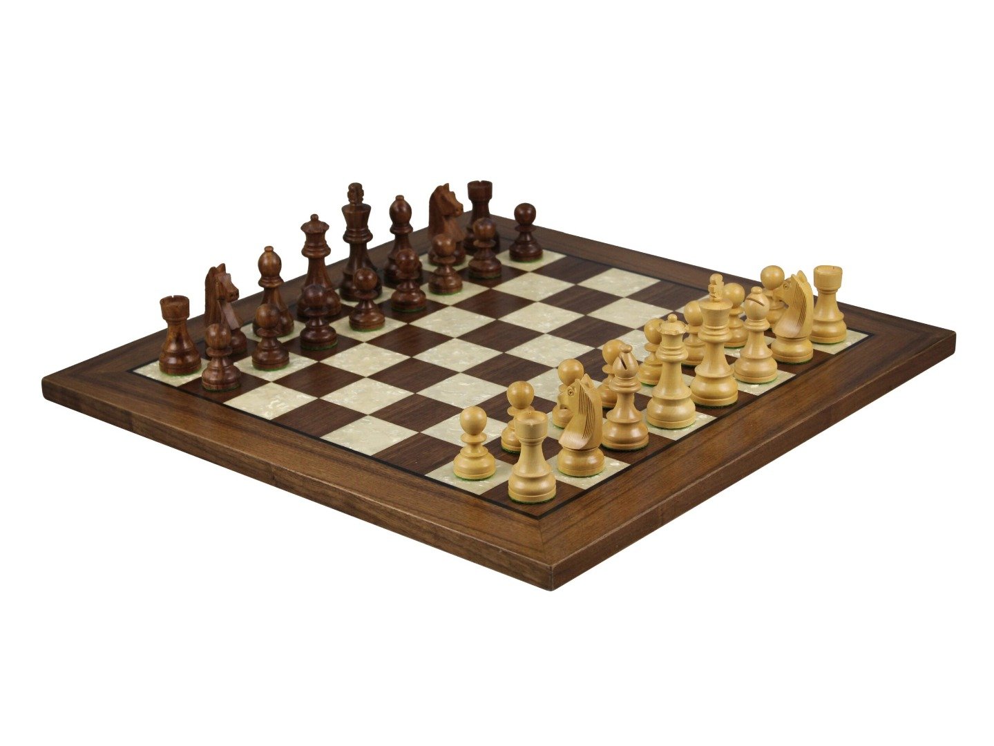 Experimenta el encanto atemporal del Juego de Ajedrez de Nogal de 20 Pulgadas con Tablero Plano Helena Mother Of Pearl y Piezas de Ajedrez Staunton Alemán Sheesham Ponderadas de 3.75 Pulgadas