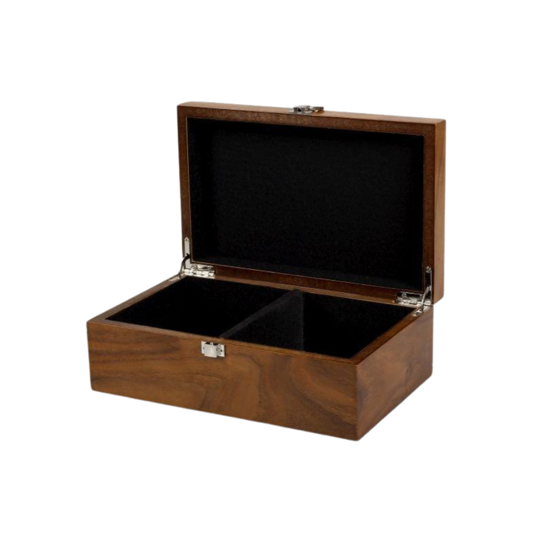 Abraza la elegancia del diseño Staunton Alemán, también conocido como las figuras de Downhead, que caracteriza este conjunto. Las líneas diagonales dinámicas del caballo y la expresión de boca cerrada revelan su naturaleza decidida. La singularidad del conjunto se enfatiza aún más por la torre con diseño robusto y el obispo intrincadamente grabado, encapsulando la esencia del juego estratégico. Elaboradas expertamente a partir de bloques de madera, cada pieza está diseñada para proteger tu tablero de ajedrez con forros de fieltro que evitan daños durante el juego. Las piezas están pulidas hasta obtener un acabado natural por artesanos expertos reconocidos por sus contribuciones a juegos de ajedrez de alta calidad. Con una línea de meticulosa atención al detalle, este Fine Walnut Chess Set se erige como un testimonio de la dedicación de los artesanos que crean obras de arte perdurables.