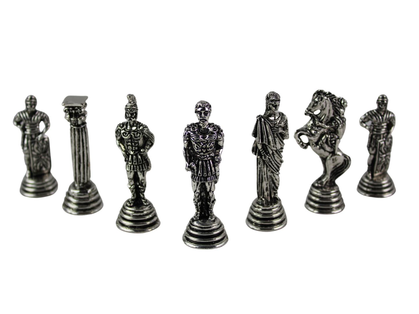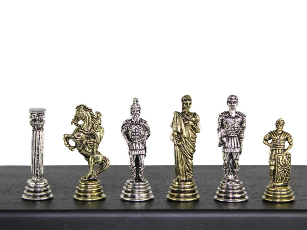 Experimenta la grandeza de la antigua Roma con nuestras piezas de ajedrez metálicas romanas, elaboradas con una aleación duradera de níquel y latón. Estas piezas de ajedrez de 2.5 pulgadas están diseñadas con intrincados detalles, capturando la esencia de los guerreros romanos, emperadores y figuras históricas. La combinación de níquel y latón le da a las piezas un contraste llamativo, añadiendo un toque de elegancia y distinción a tu tablero de ajedrez. Ya sea para exhibición o para jugar, estas piezas de ajedrez de metal están hechas para durar, lo que las convierte en una adición perfecta a cualquier colección de ajedrez. Ideal para los entusiastas del ajedrez que aprecian tanto los temas históricos como la artesanía de alta calidad.